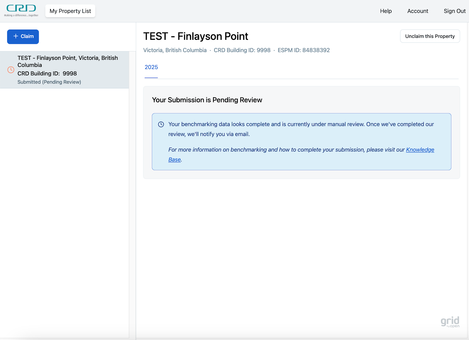 STEP 1 - After logging in to the Building Owner Portal, click on ‘My Property List’ in the top navigation bar and select one of your claimed properties on the left sidebar.