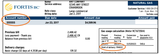 FortisBC data exchange can be set up for one natural gas meter per building. You need the FortisBC account number, point of delivery number, and previous bill total to receive up to 36 months of historic data into your account, which can then be easily shared. Please refer to FortisBC’s guide for step-by-step instructions (