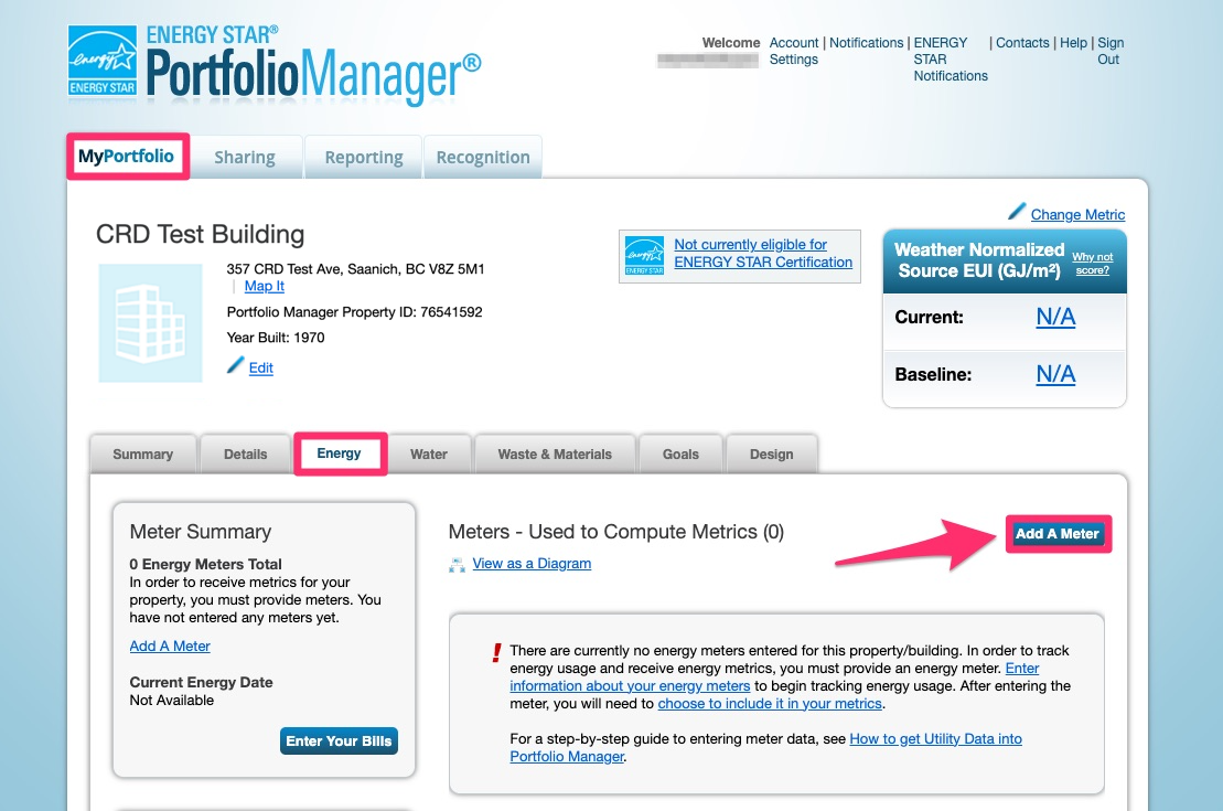 STEP 1 - Select your property from the MyPortfolio tab and click on the Energy tab. Click on ‘Add a Meter’.