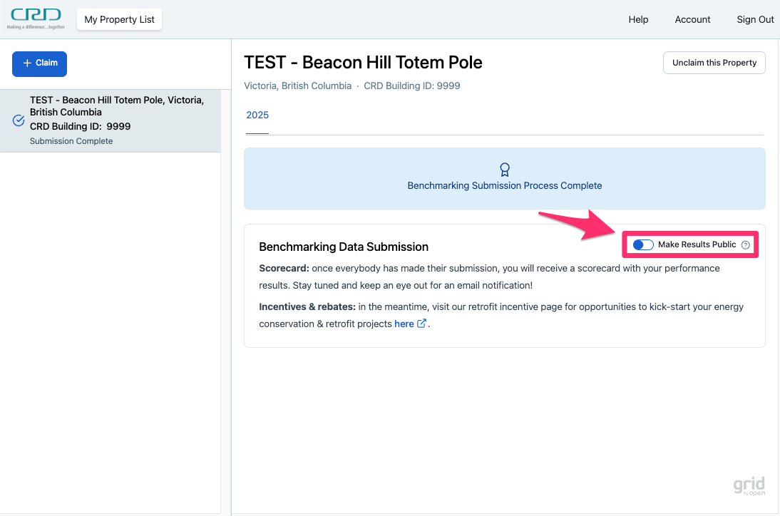If you would like your building to opt-out of the benchmarking map, you can simply log into the Building Owner Portal and switch the “Make Results Public” toggle to the “off” position (note that this option is only available once you have completed the benchmarking submission/review process).